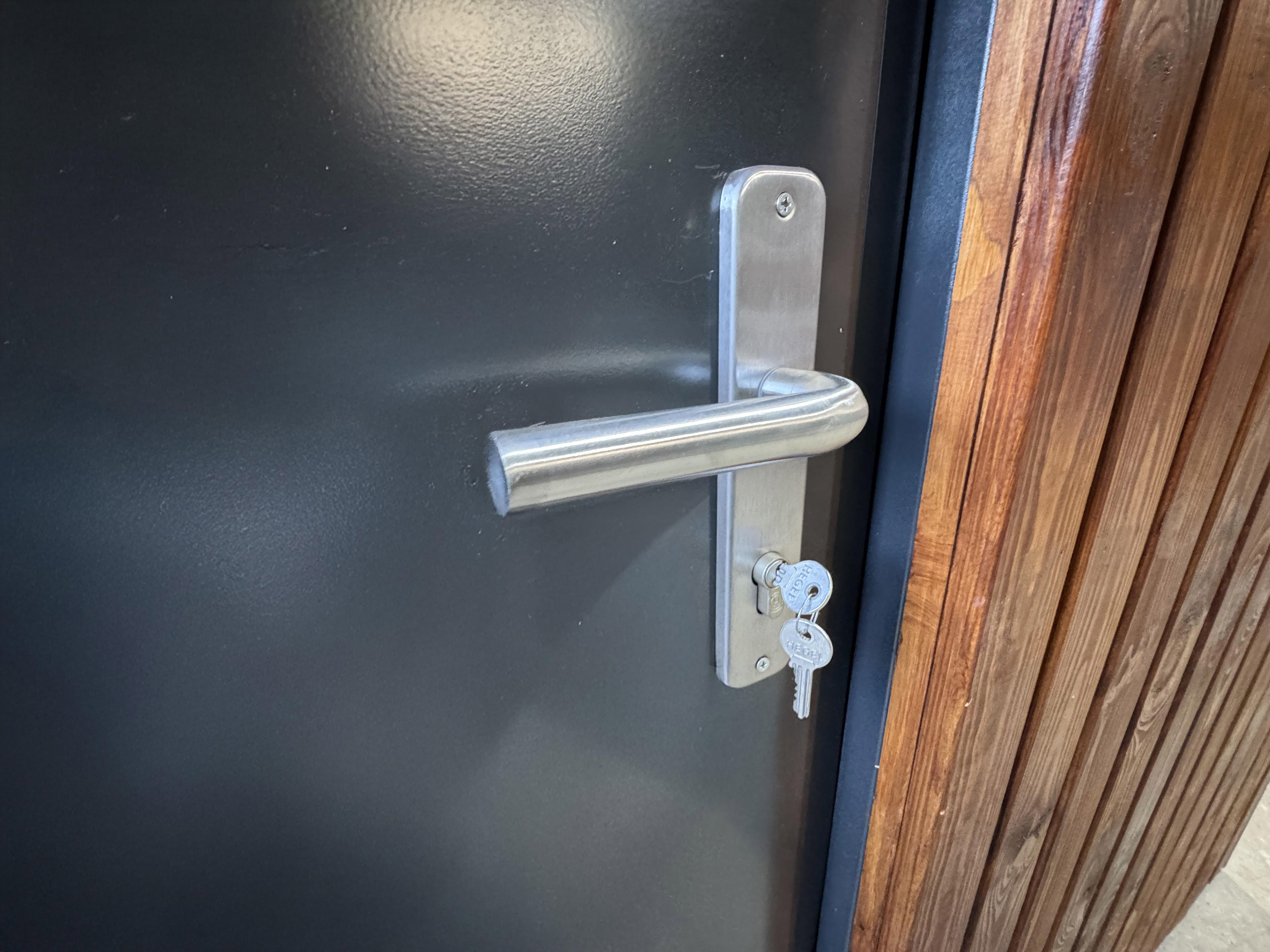Eichenholzverkleidung,1x Raum, 2x Klappe, 1x Eingangstür |